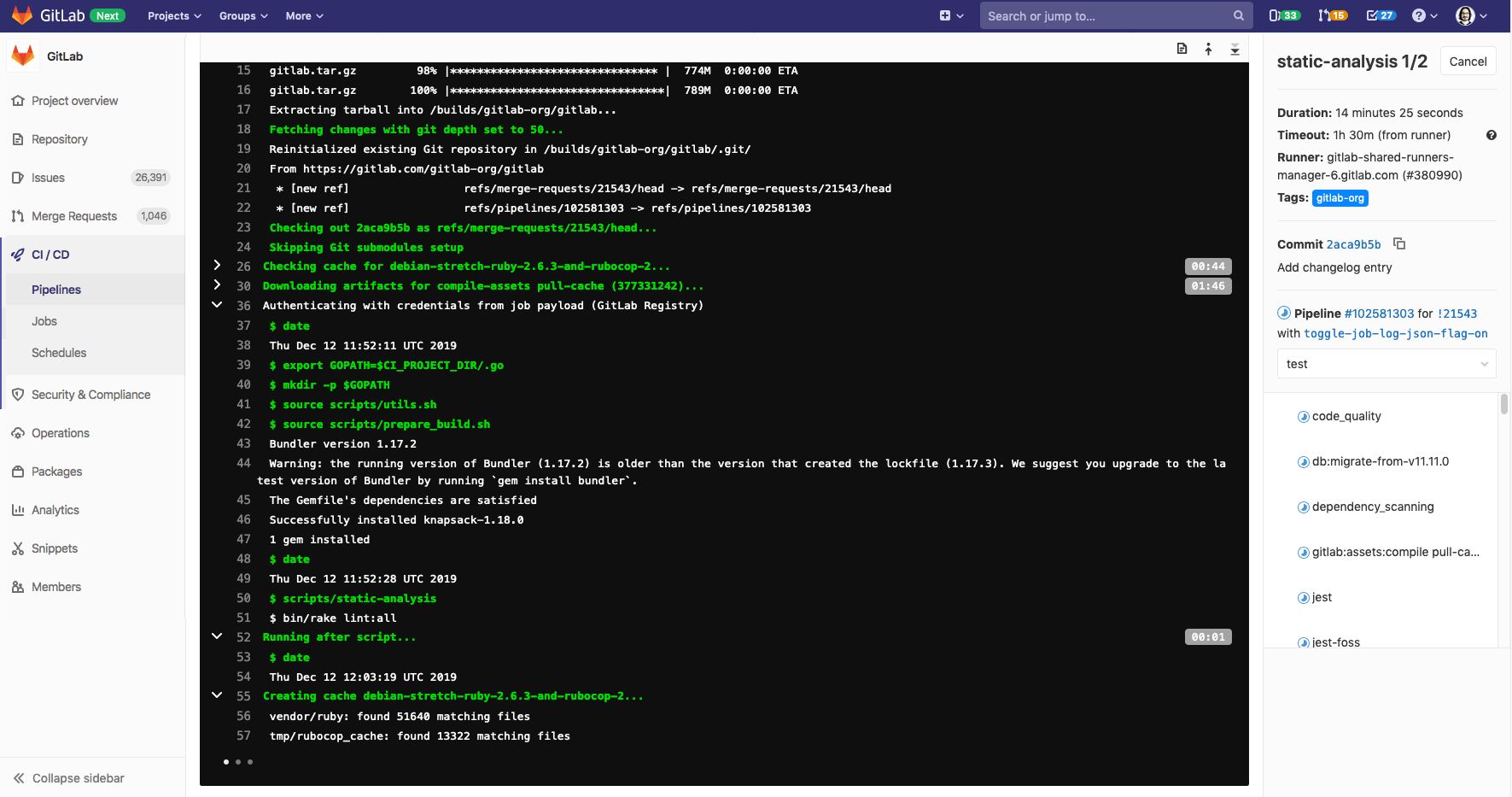 Pipeline configuration begins with jobs. Jobs are the most fundamental element of a .gitlab-ci.yml file.