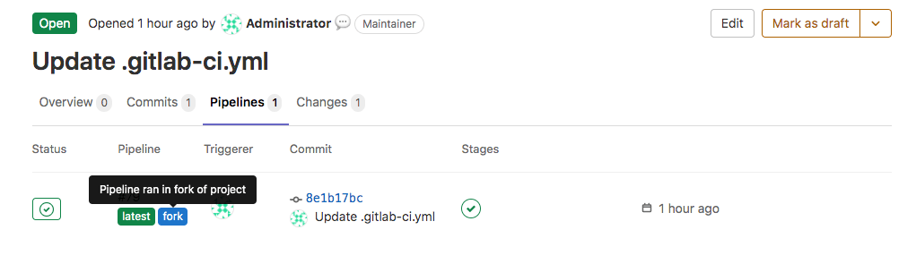 - It's created and runs in the fork (source) project, not the parent (target) project.