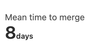 The mean time to merge (MTTM) metric shows the average time between when a merge request is created, and when it is merged. To view how the MTTM changes over time, compare MTTM across different date ranges.