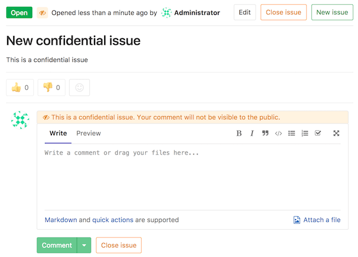 Likewise, while inside the issue, you can see the eye-slash icon right next to the issue number. There is also an indicator in the comment area that the issue you are commenting on is confidential.