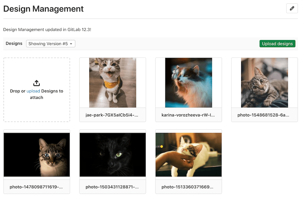 Design Management allows you to upload design assets (wireframes, mockups, etc.) to GitLab issues and keep them stored in one single place, accessed by the Design Management's page within an issue, giving product designers, product managers, and engineers a way to collaborate on designs over one single source of truth.
