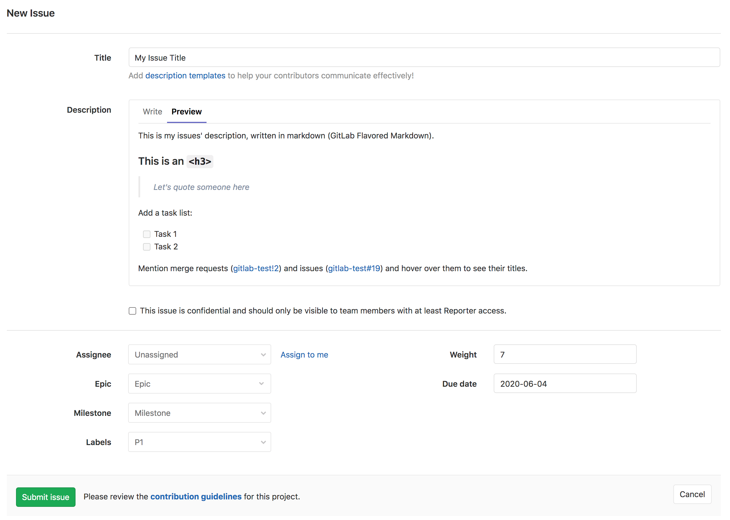 - Checkbox to make the issue confidential