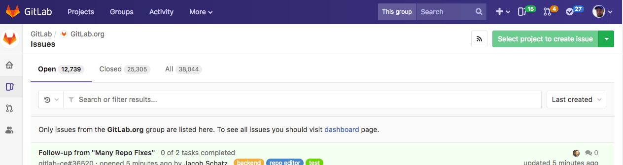 as well as #22 and #23 in group/otherproject. #17 is not closed as it does