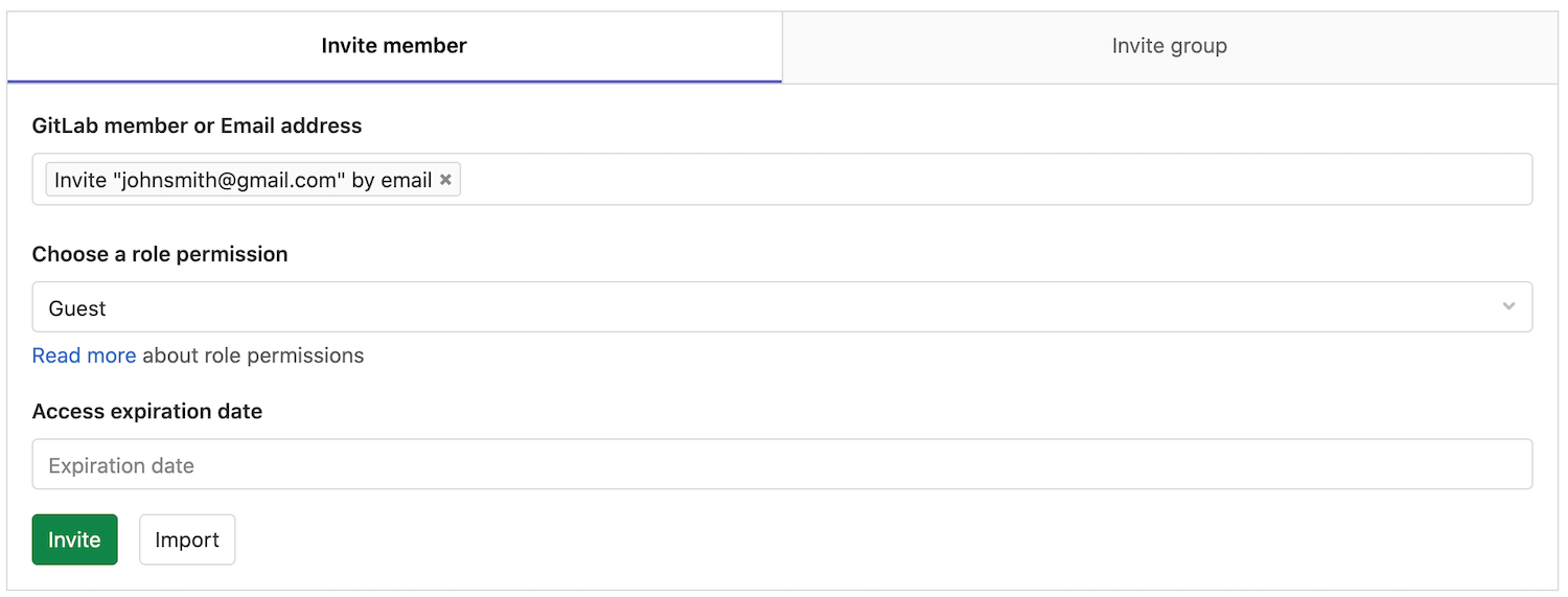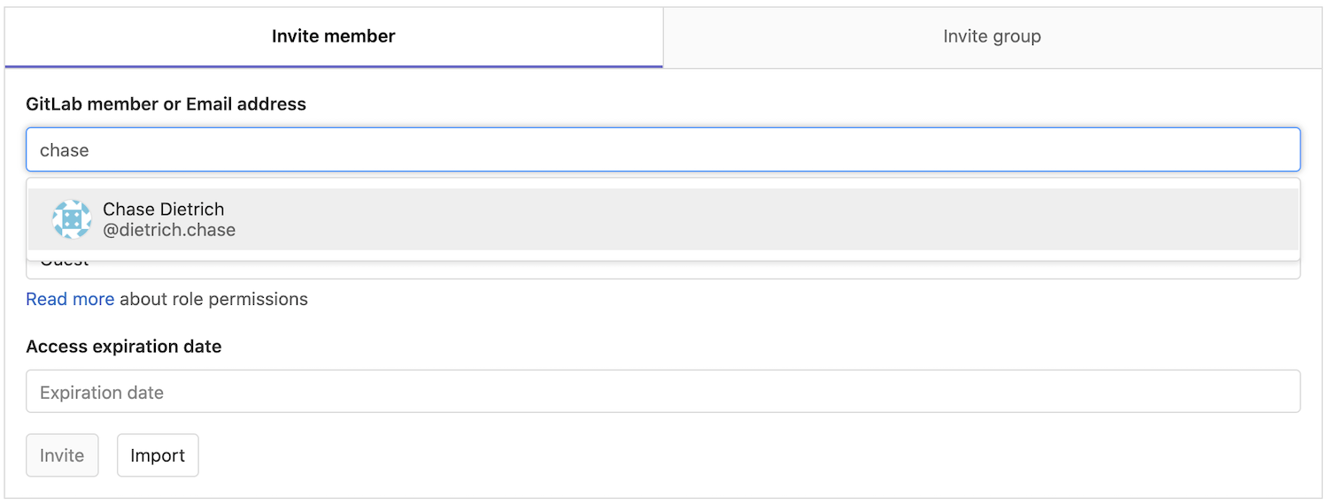 If a user you want to give access to doesn't have an account on your GitLab instance, you can invite them just by typing their e-mail address in the user search field.