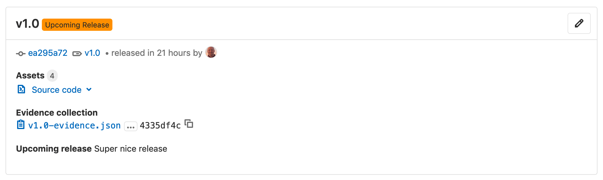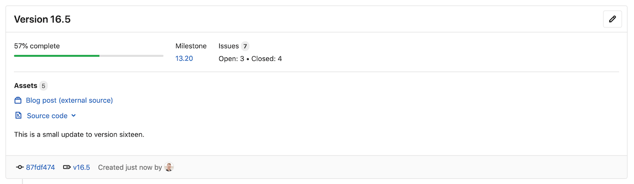 - In the top-right corner of the release you want to modify, click Edit this release (the pencil icon).