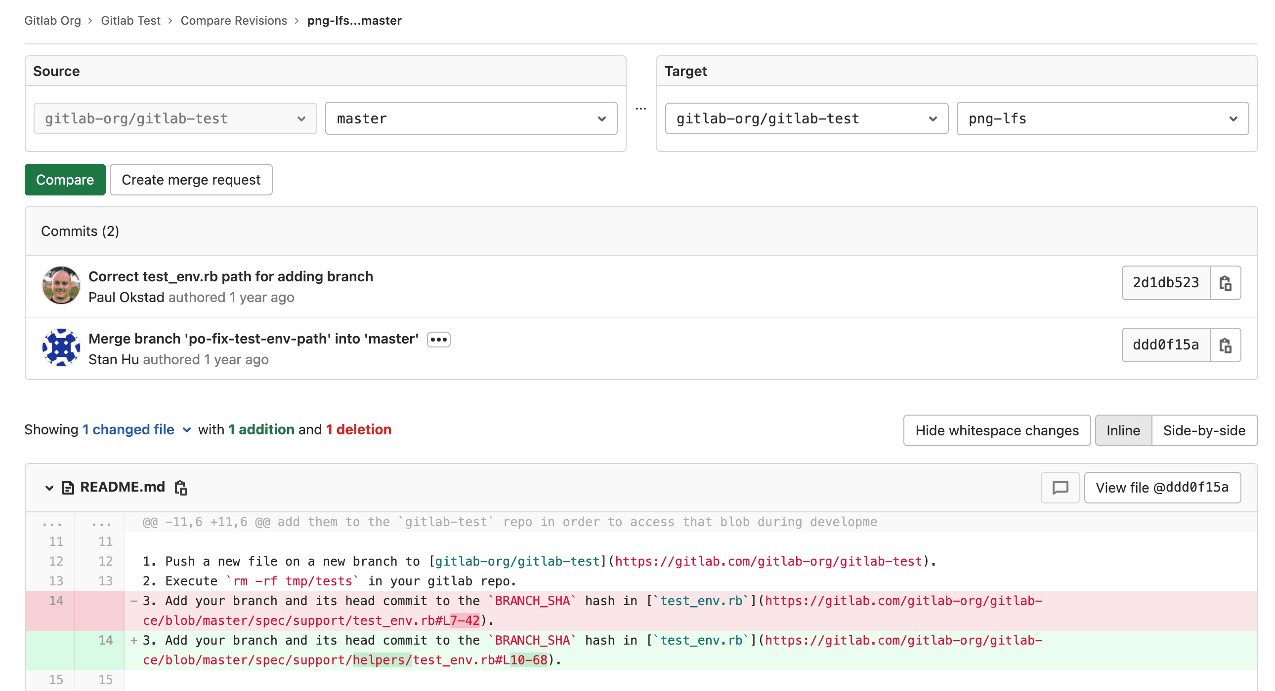 Click Compare to view the changes inline: