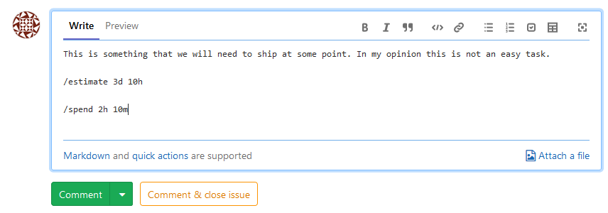 Below is an example of how you can use those new quick actions inside a comment.